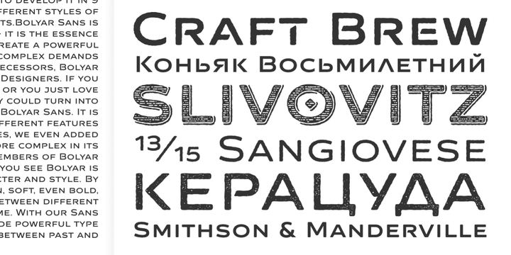 Bolyar Sans is not just another font family in our portfolio – it is the essence from all our efforts thru the past 5 years to create a powerful type tool that could easily meet very diverse and complex demands of modern design. Furthermore, like all its predecessors, Bolyar Sans is a type concept created by Designers for Designers. If you are in wine and spirits industry, packaging design, or you just love to work with strong headlines that effortlessly could turn into brand logos, than you should definitely try our Bolyar Sans. It is designed for this.